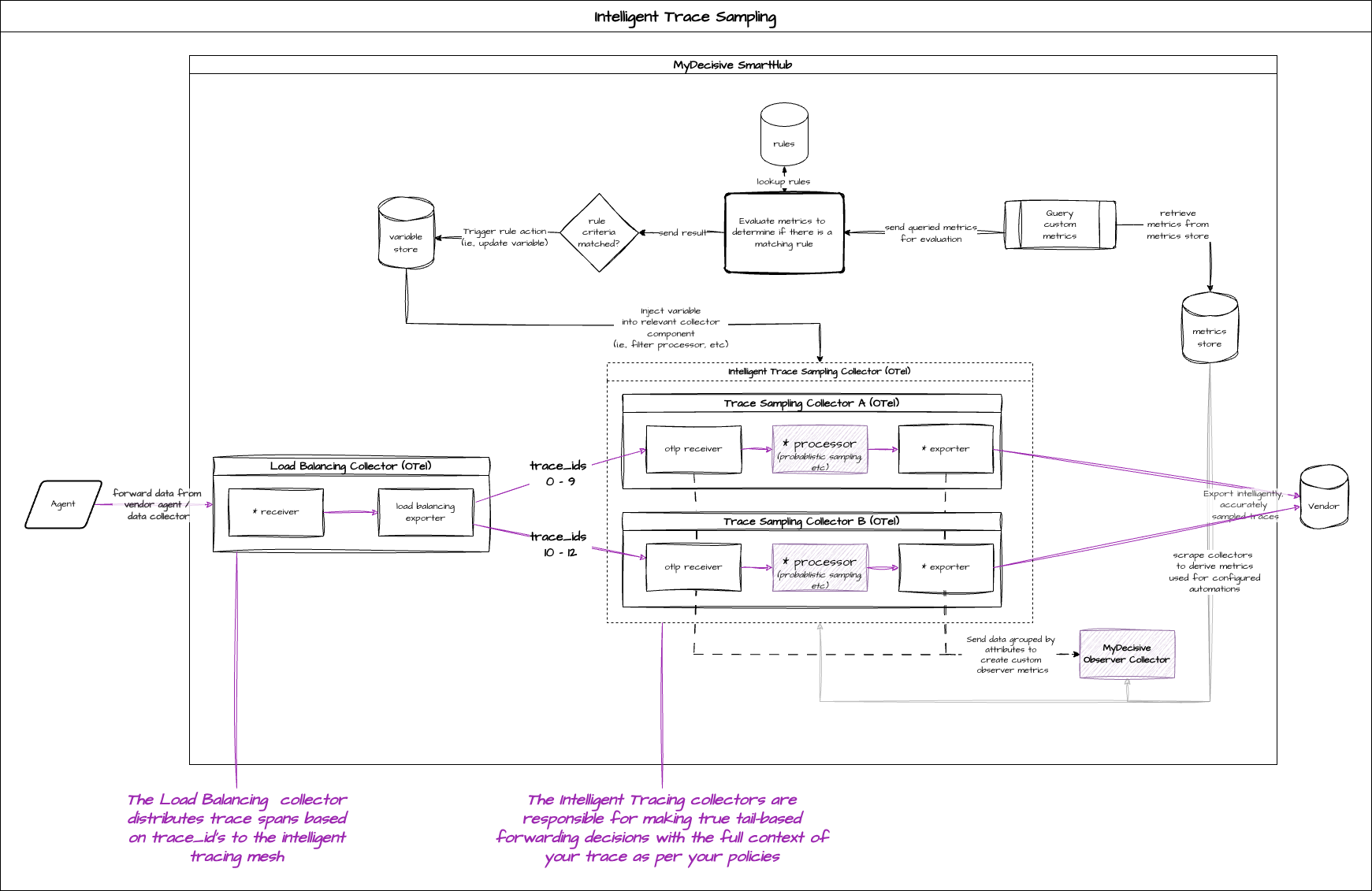 SmartHub brings a paradigm shift with “Non-Sampling Sampling,” as we introduce our new intelligent approach, Perfected Sampling. Only MyDecisive delivers a perfected-sample approach to traces, providing 100% signal for debugging and analysis without incurring wasted vendor ingest costs. We send only traces that are confirmed to be perfect and/or critical, allowing you to forward these necessary traces to your vendor of choice or low cost storage.
